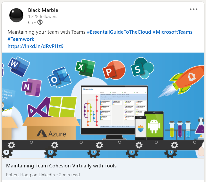 At Black Marble, our business has maintained our team-cohesion through Microsoft Teams. It has proved vital for day to day collaboration, both internally, and externally, helping bolster our working environment.